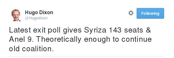 Reuters: "Ο ΣΥΡΙΖΑ θα έχει 143 έδρες και οι ΑΝΕΛ 9 - Κάνουν πάλι κυβέρνηση"